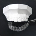 歯型上でバーチャルに歯を動かして、ごく薄い透明プラスチックでマウスピースを作ります。何個ものマウスピースを順番に使って、少しずつ段階的に歯並びを整えます。一日最低17時間使用しないと効果が出ませんが、外したいときに外せるのが嬉しい矯正装置です!